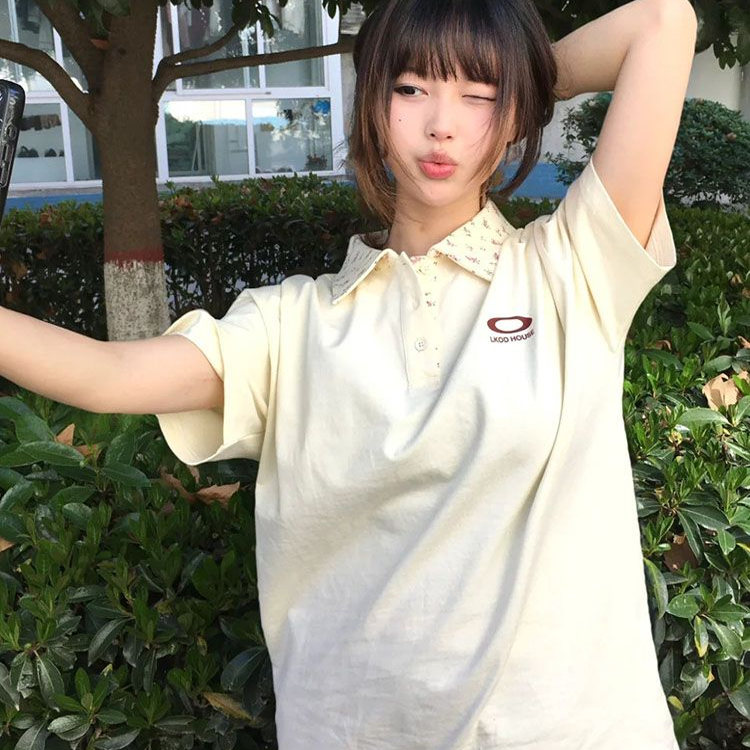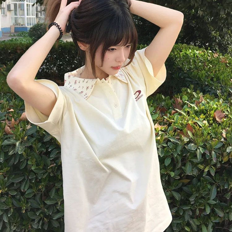 短袖 半袖 T恤女2025夏季 宽松学生INS超火韩版 上衣 新款 甜美风polo衫