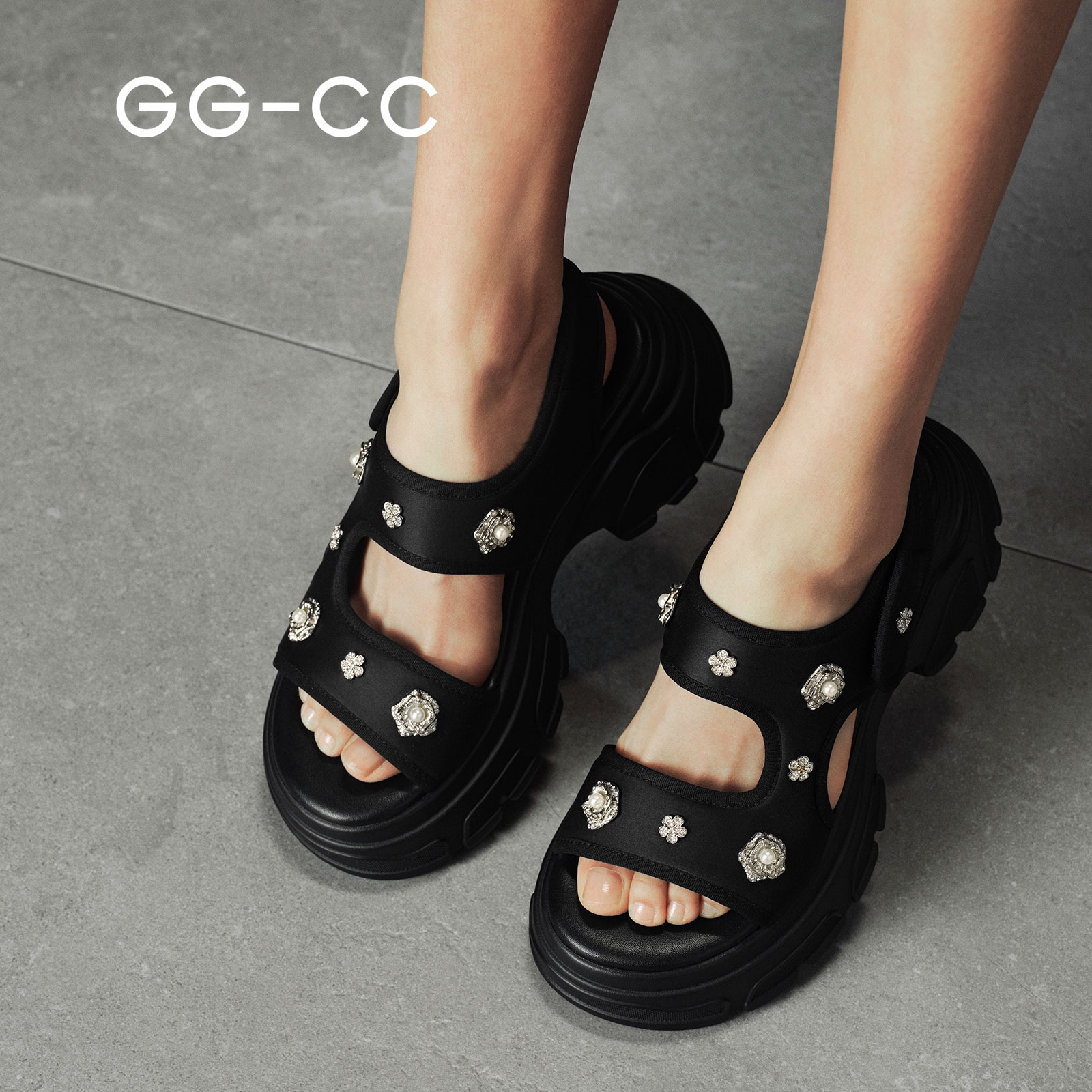 女增高休闲鞋 新厚底钻饰老爹凉鞋 GGCC2025夏季 不累脚 悬浮星岛