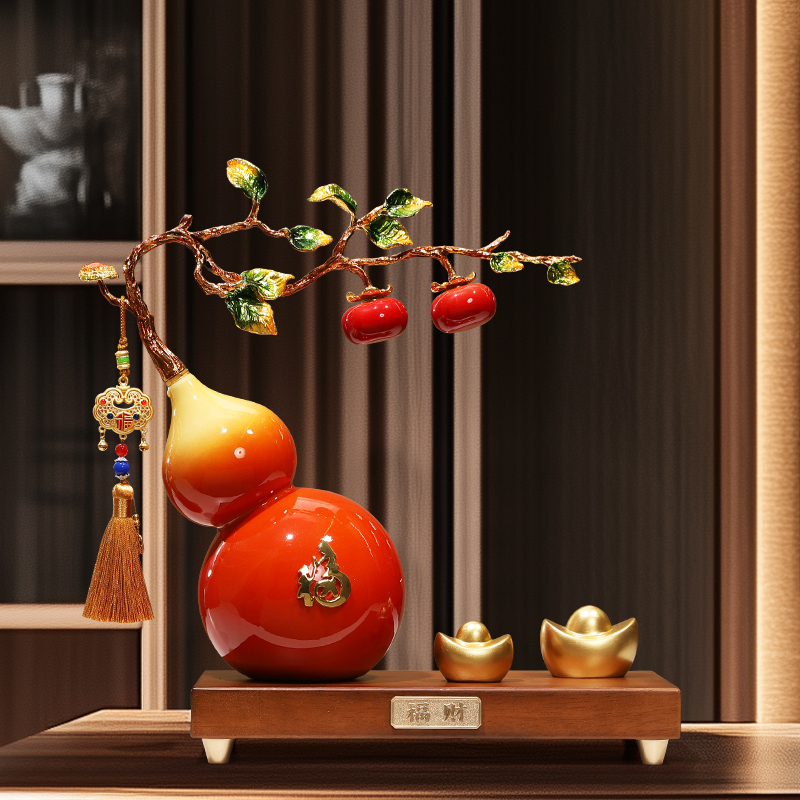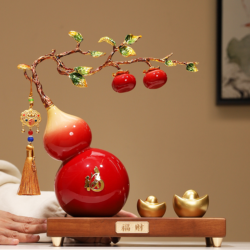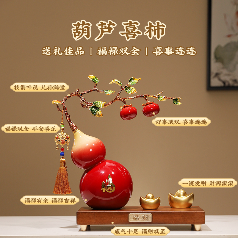 新中式 葫芦摆件高级感客厅招财福禄喜柿家居饰品乔迁之喜入宅礼物