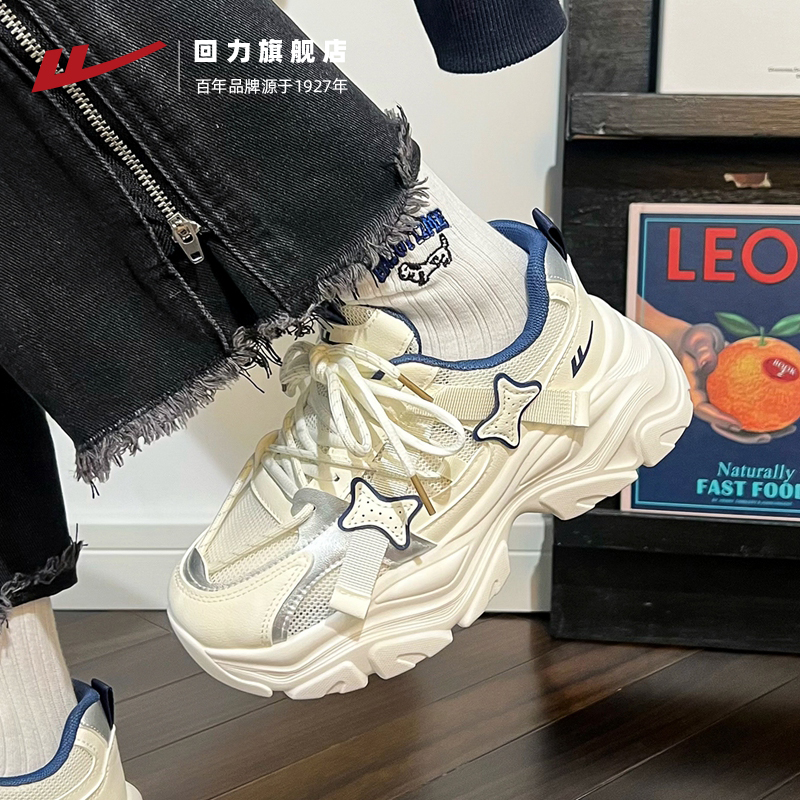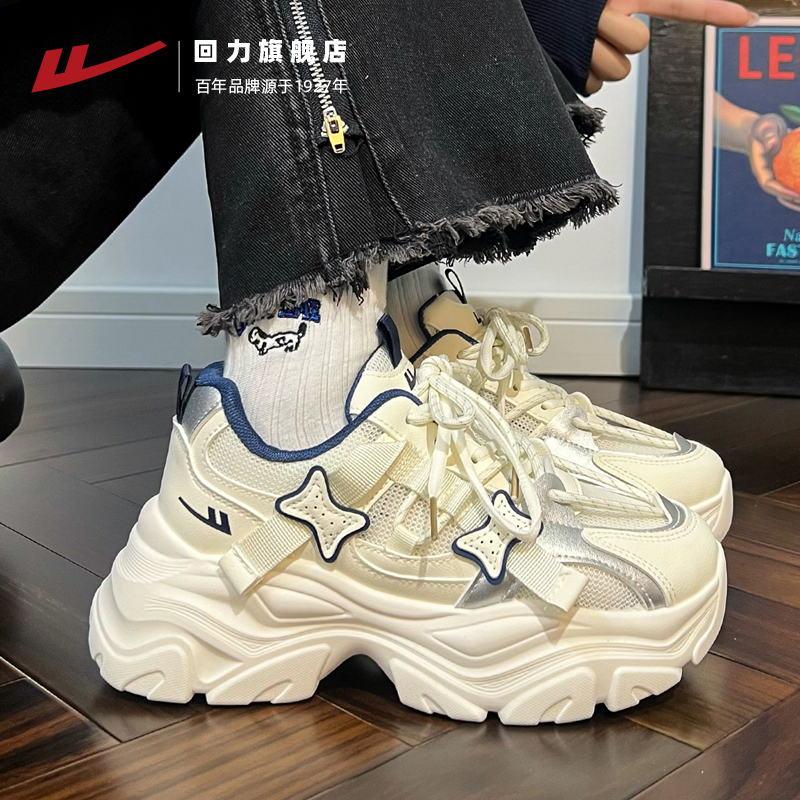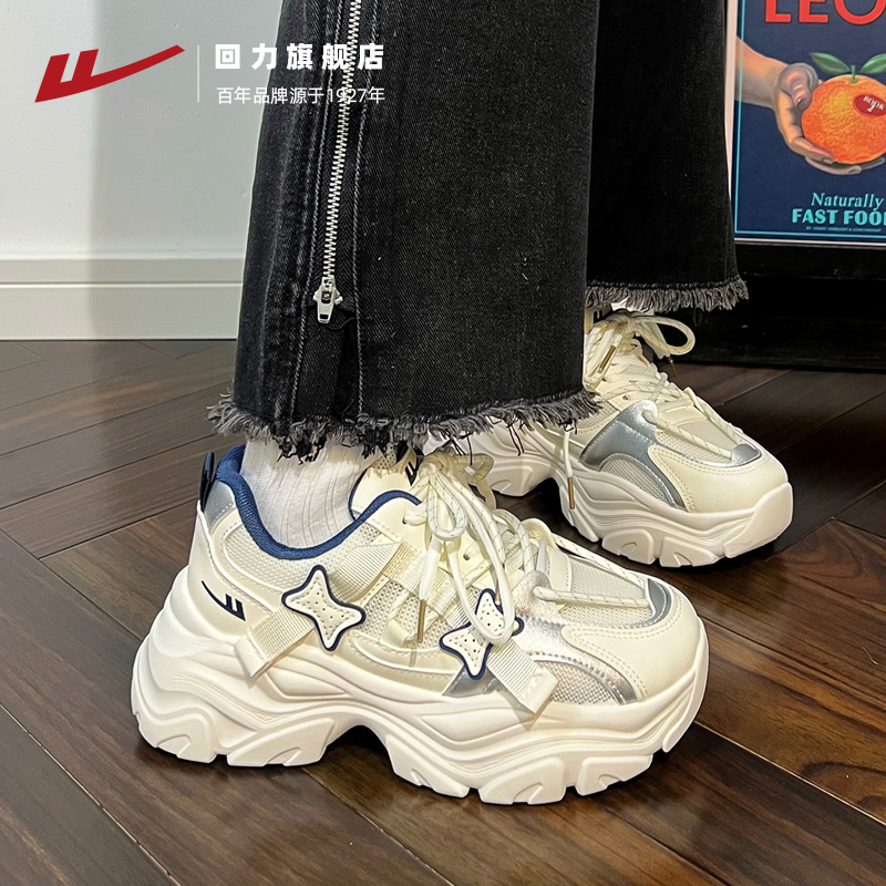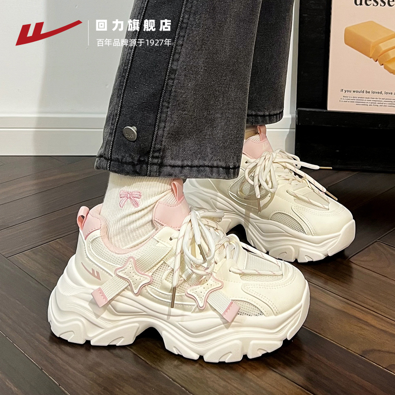 女秋季 女鞋 透气2025新薄款 子运动休闲鞋 网面百搭鞋 回力厚底老爹鞋