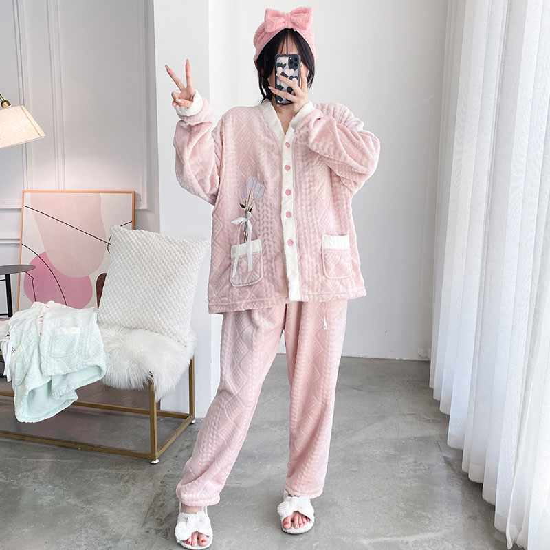 女200斤法兰绒加厚珊瑚绒哺乳月子服家居套装 孕妇睡衣秋冬款 大码