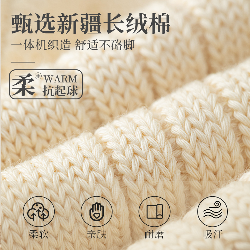 外穿潮长袜 堆堆袜秋冬男士 日系粗线白色袜子女秋季 纯棉中筒春秋款
