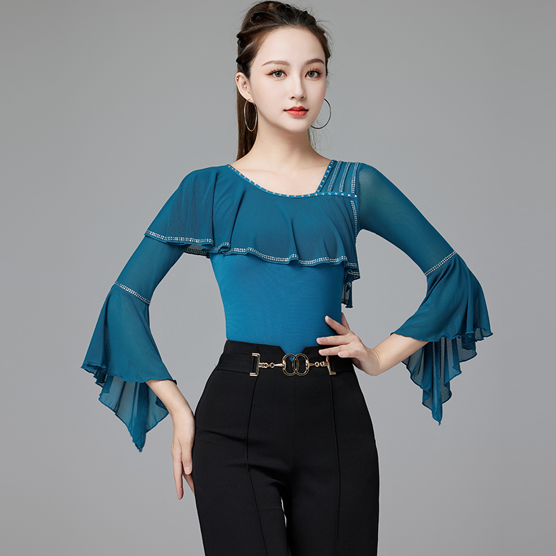 B10053 连体上衣交谊舞华尔兹 IAMYC摩登舞上衣女V领新款 舞衣修身