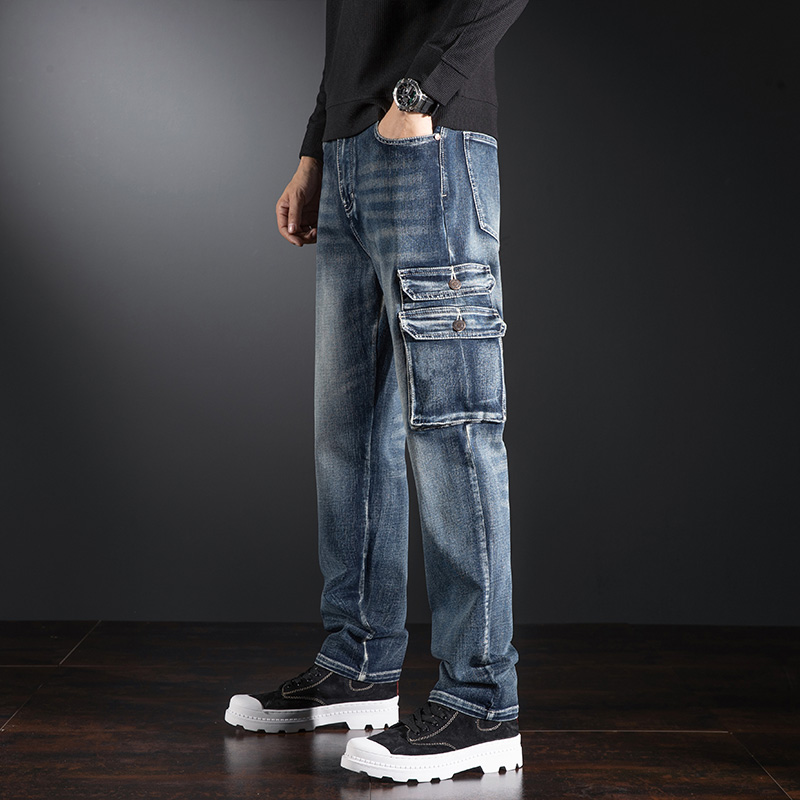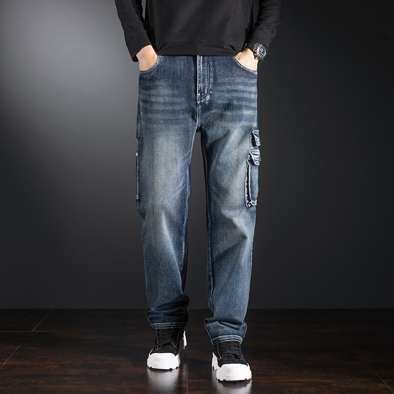 多口袋工装 胖子百搭长裤 牛仔裤 ins潮直筒加肥加大码 子 男士 春秋款