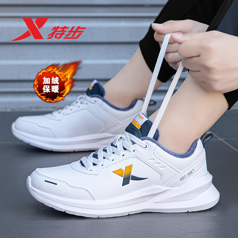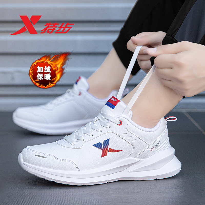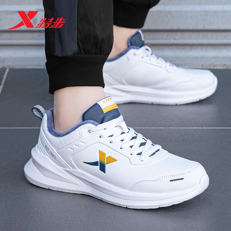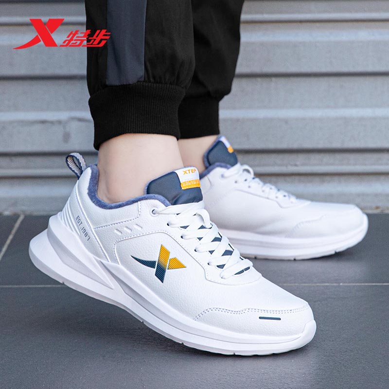 男秋季 子黑色运动鞋 跑步鞋 网面透气减震鞋 皮面防泼水男鞋 特步跑鞋