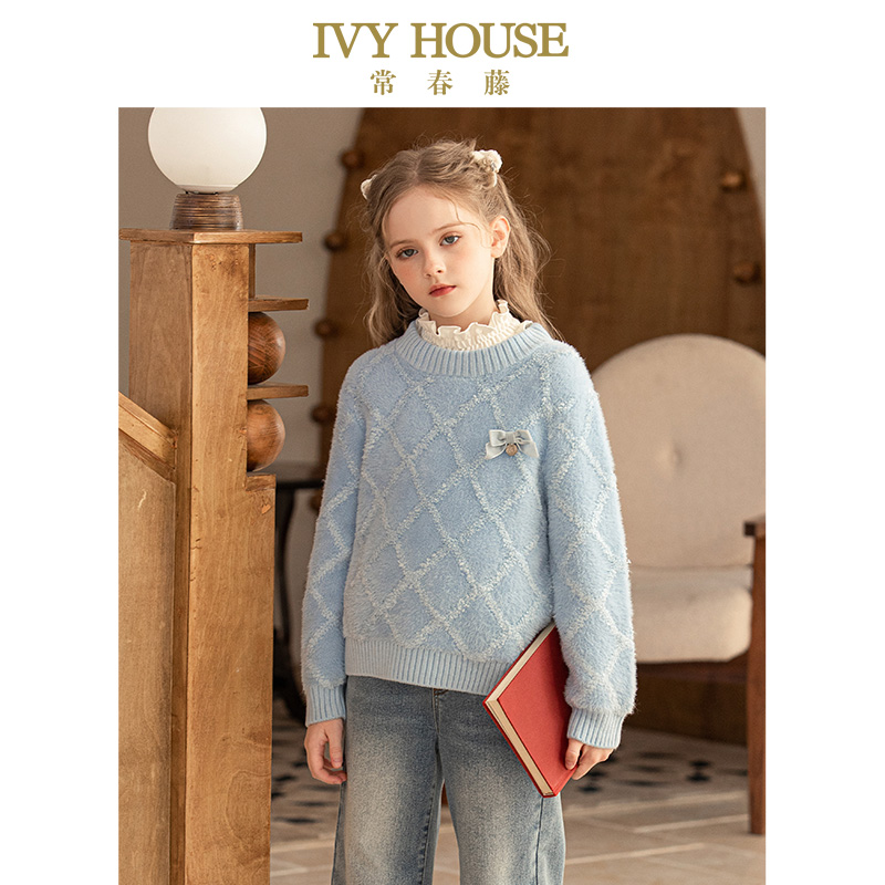 HOUSE常春藤儿童装 保暖亲子装 女童T恤秋季 木耳边德绒打底衫 款 IVY