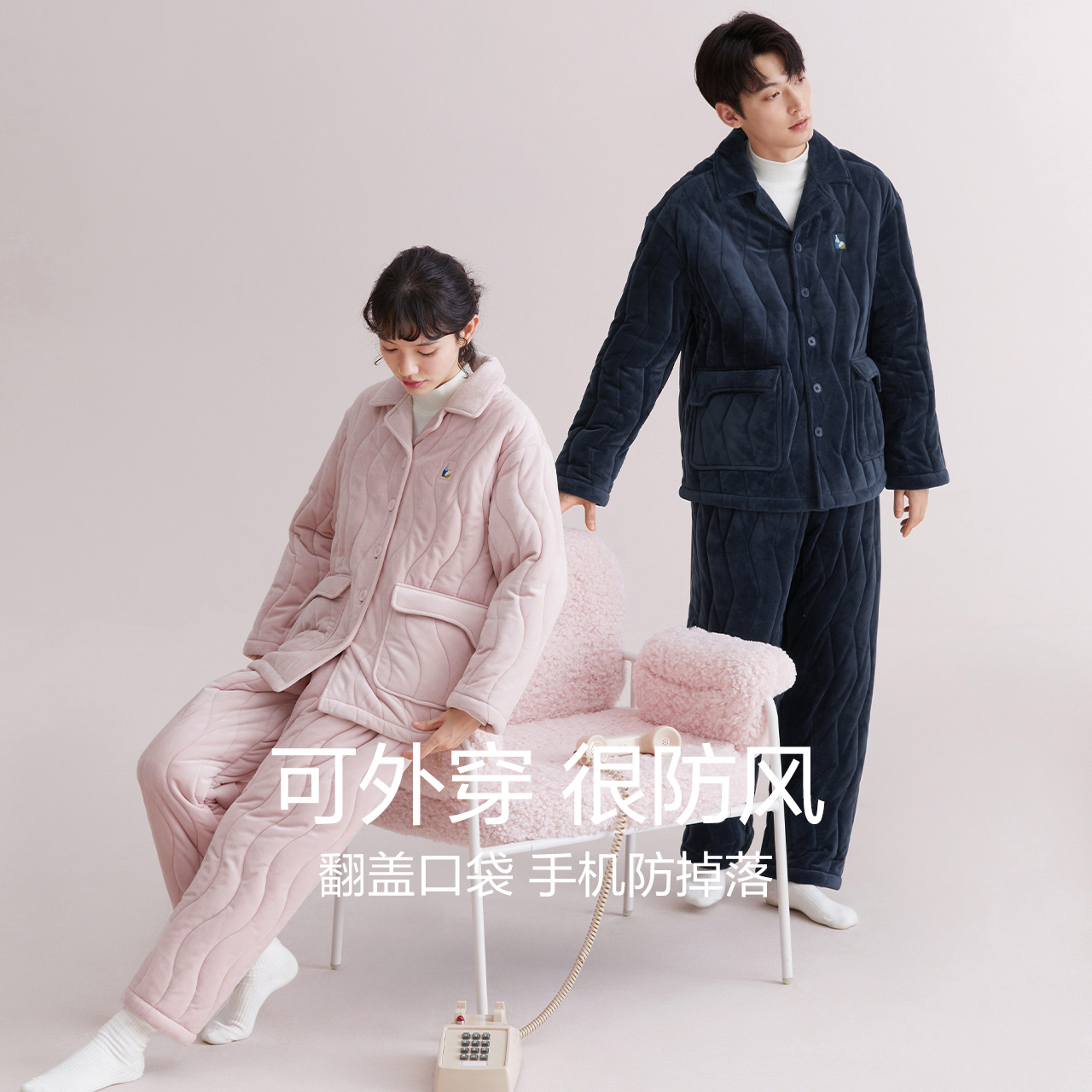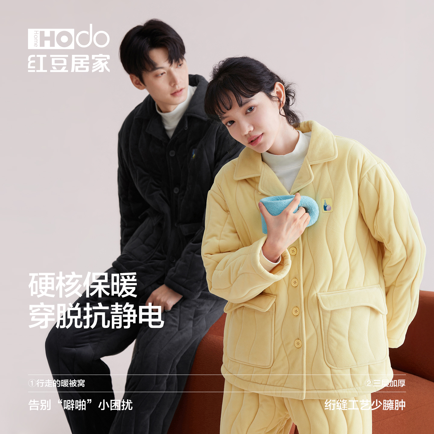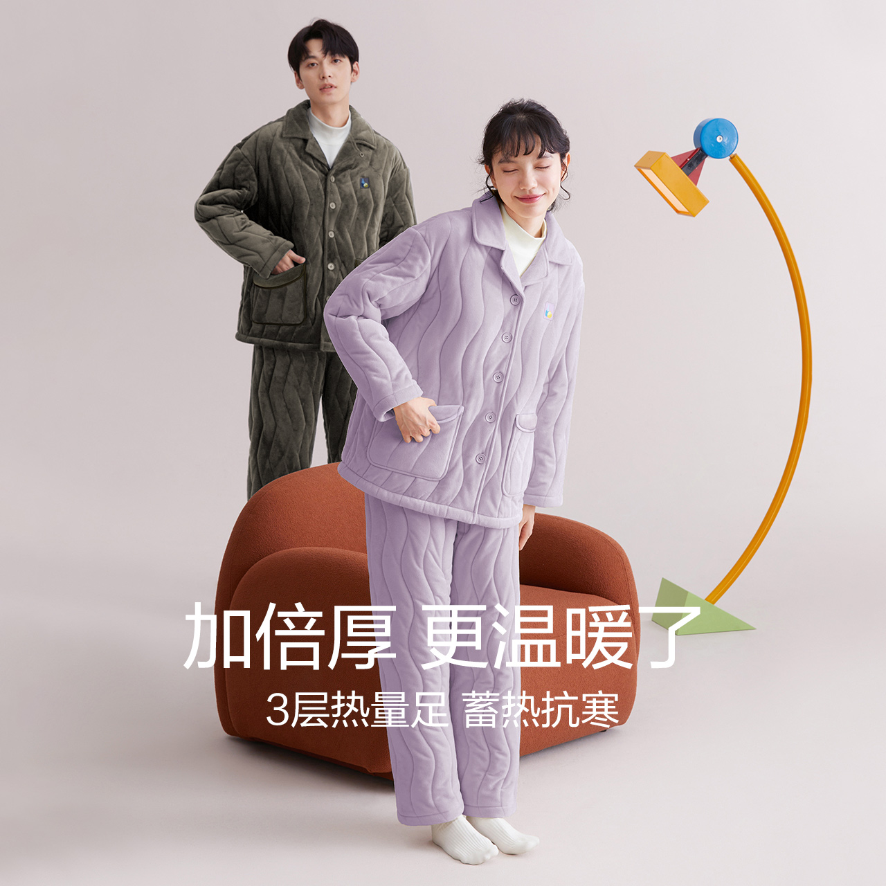 男冬季 红豆居家夹棉睡衣情侣三层加厚珊瑚绒抗静电女套装 预售