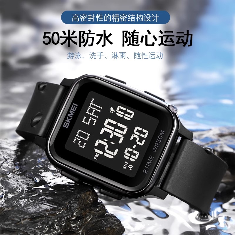 初高中学生手表男款 青少年运动防水夜光儿童多功能方形电子表女款