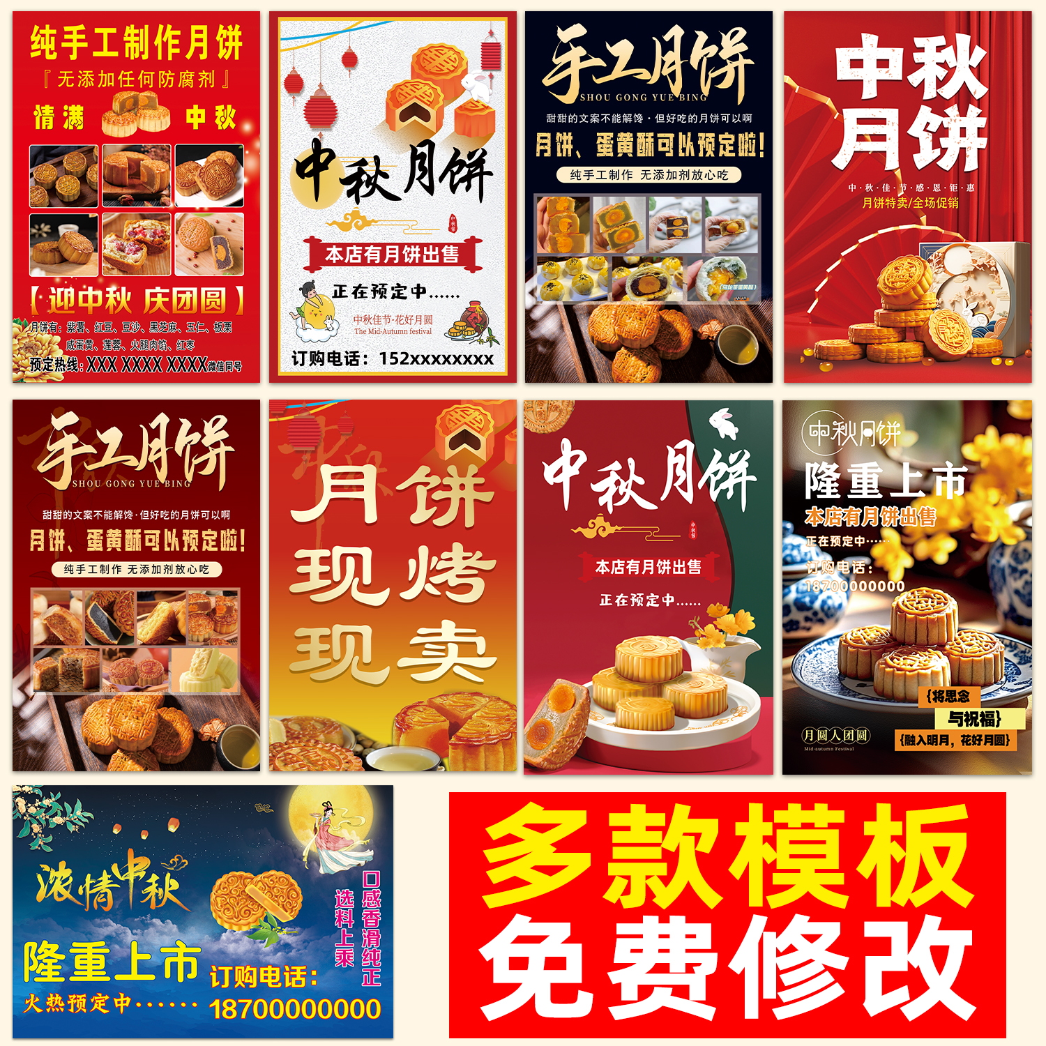 中秋月饼海报宣传海报设计卖月饼广告牌五仁月饼墙贴宣传装 饰挂画
