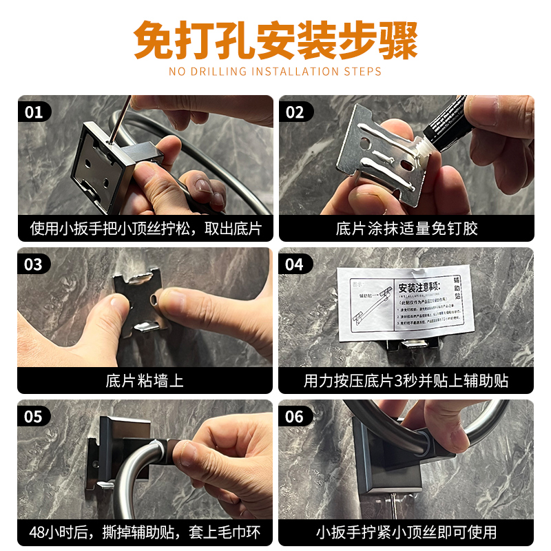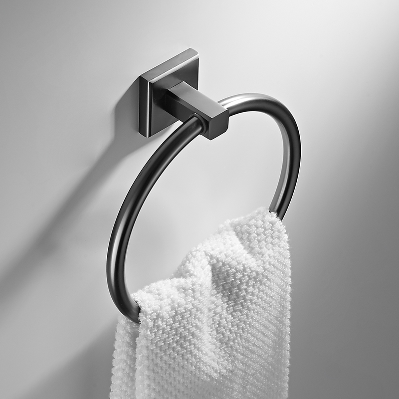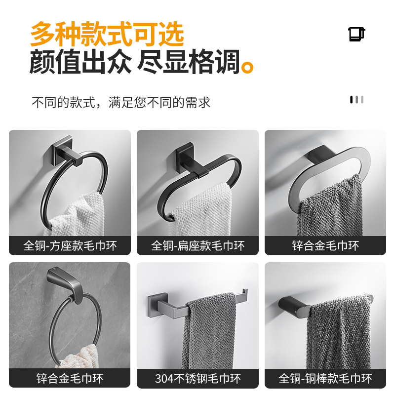 拉丝枪灰全铜毛巾环免打孔毛巾圈浴室圆形毛巾挂环卫生间擦手巾架