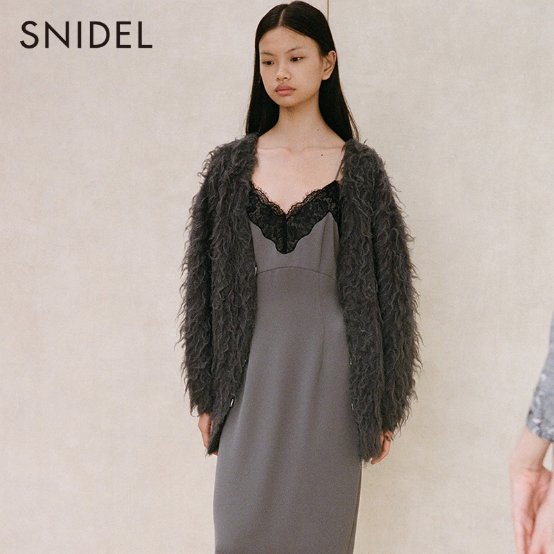 SNIDEL秋冬纯色柔软毛绒V领宽松针织开衫 外套SWNT234206