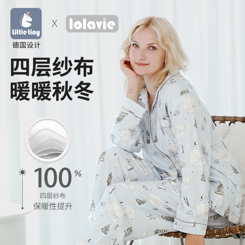 长袖 睡衣纯棉家居服套装 有棵树停螨衣男士 情侣睡衣女 成毅同款