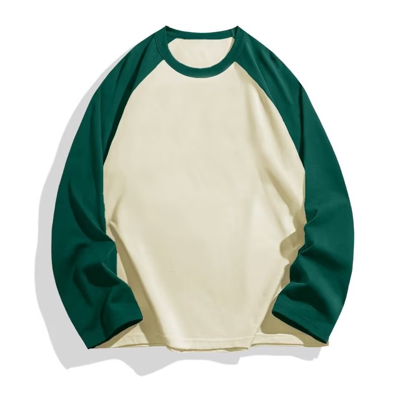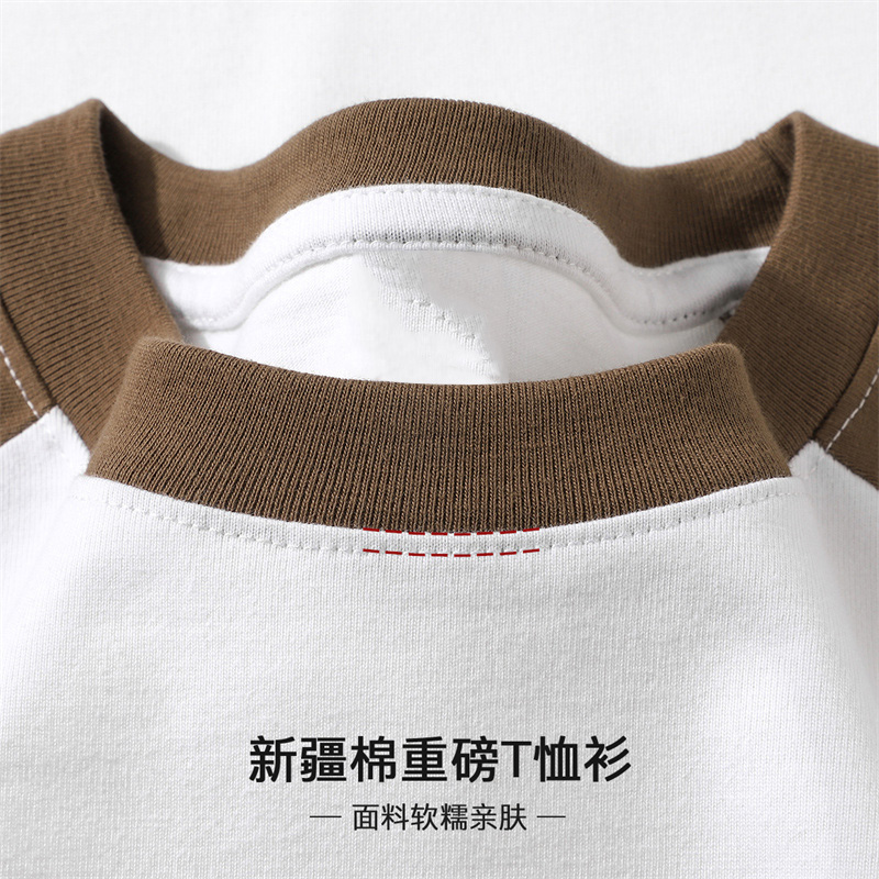 学院篮球简约浅咖啡纯棉插肩袖 大学男女上衣 T恤男撞色新疆棉长袖