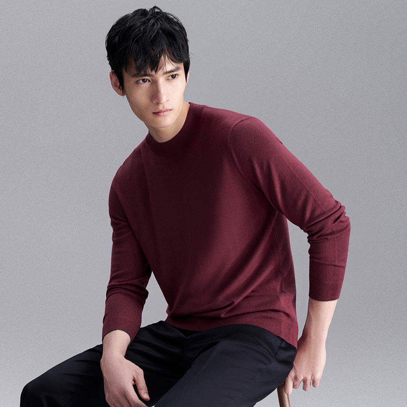商务休闲套头打底羊毛衫 报喜鸟秋冬男士 圆领针织毛衫 100%羊毛