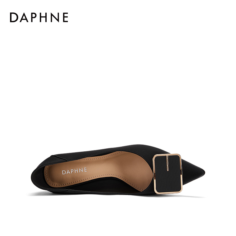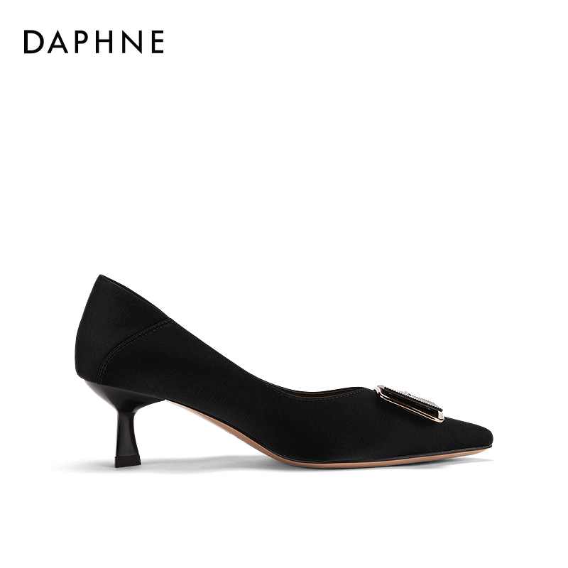 子 绝美黑色漆皮职业浅口单鞋 达芙妮红底高跟鞋 女细跟秋冬2025新款