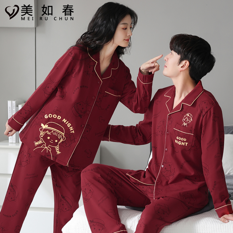 纯棉喜庆红色结婚家居服男女套装 情侣睡衣秋冬季 高档面料 莱卡