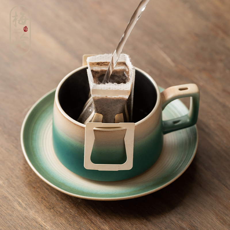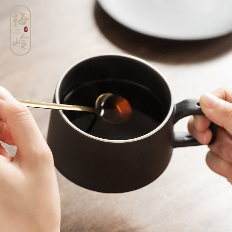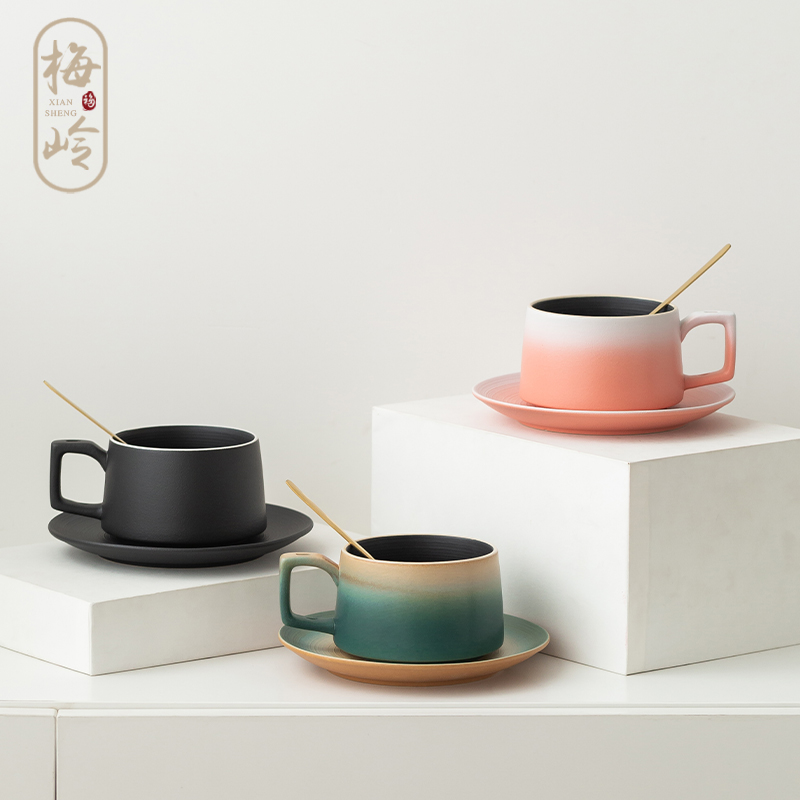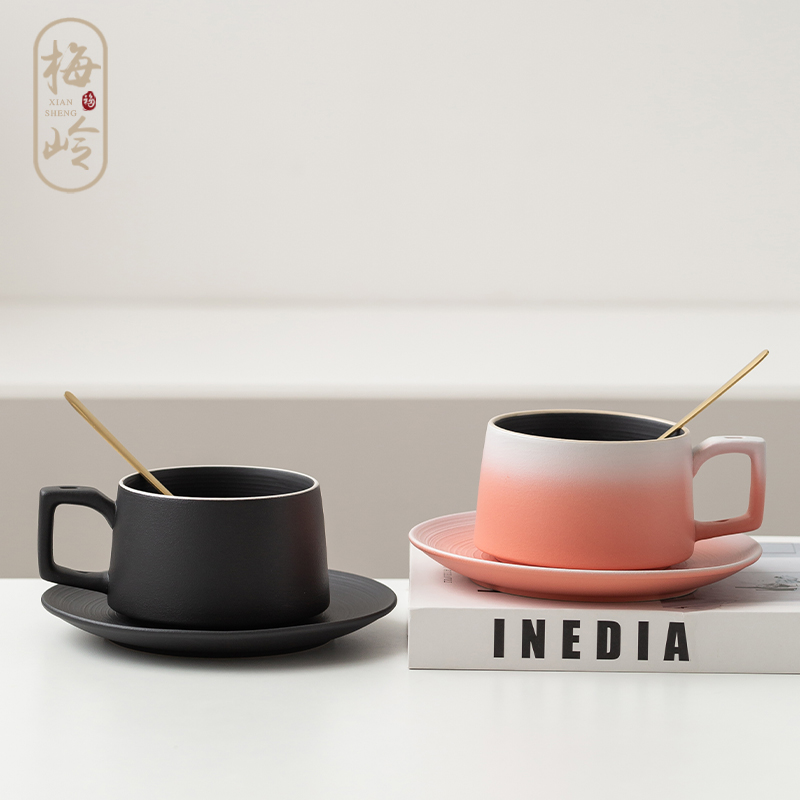梅岭先生创意陶瓷咖啡杯茶咖杯拿铁拉花杯小众设计感马克杯碟套装
