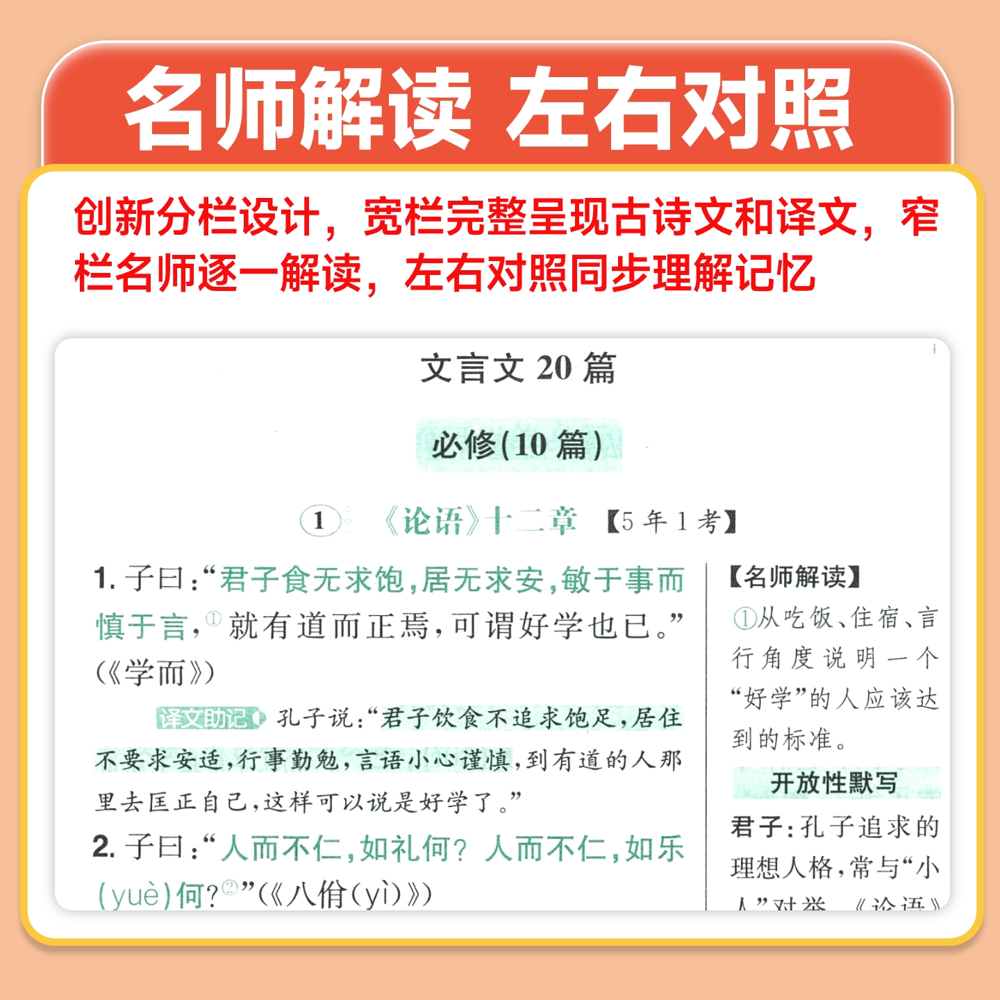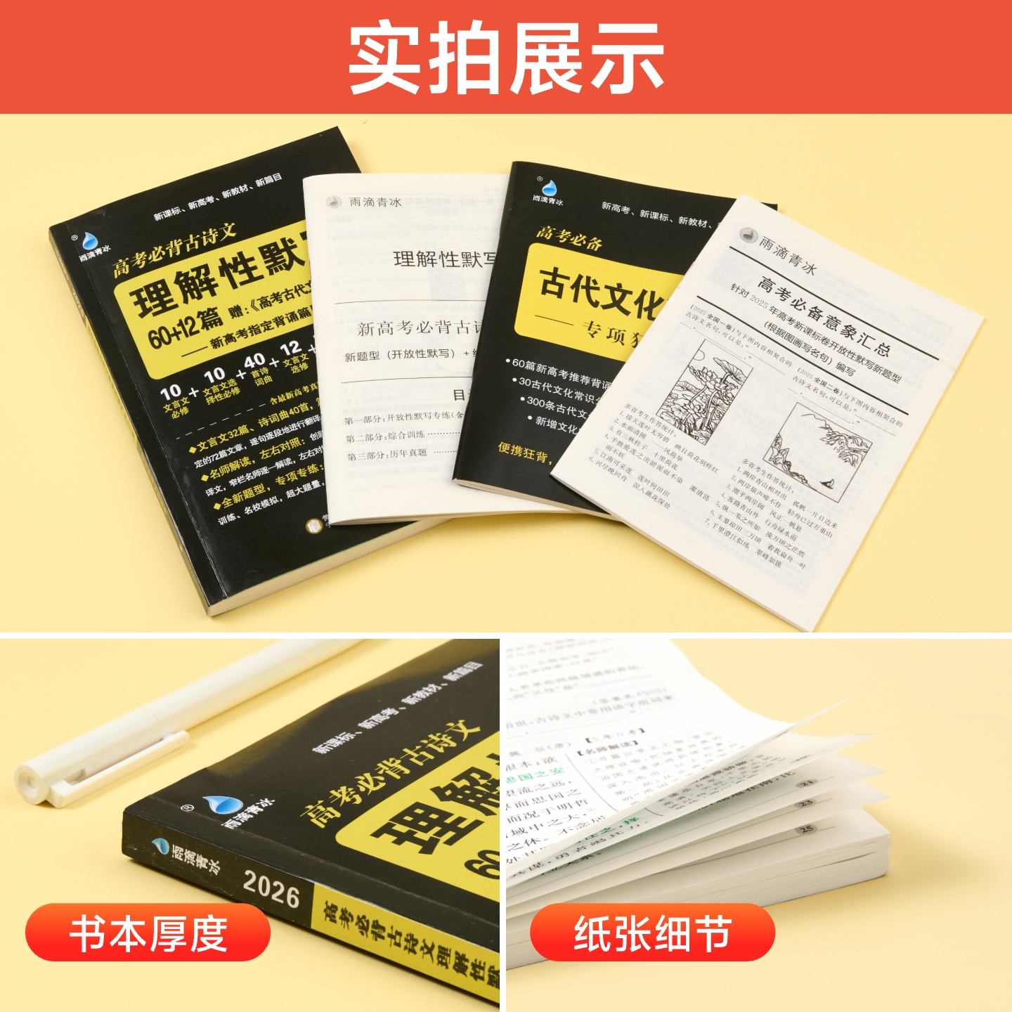 2026版 20篇雨滴教育新高中英语词汇高考必读文言文古诗词理解性默写75篇古代文化常识高一二三教辅资料书 高中语文必背古诗文72