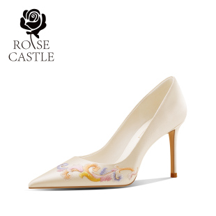 秀禾礼服旗袍单鞋 如意 女手工刺绣轻奢白色高跟鞋 castle婚鞋 rose
