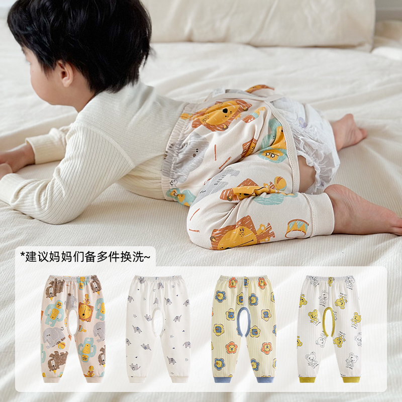 睡裤 儿童秋裤 家居服可开档 婴幼儿高腰护肚裤 宝宝纯棉秋裤