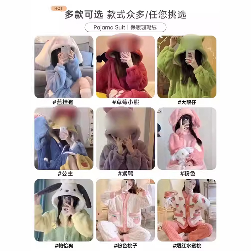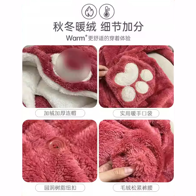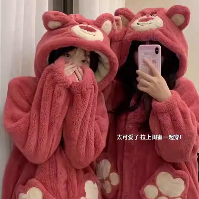 秋季 女草莓熊加厚浴袍珊瑚绒睡裙玉桂狗 睡衣冬天毛绒睡袍2024新款