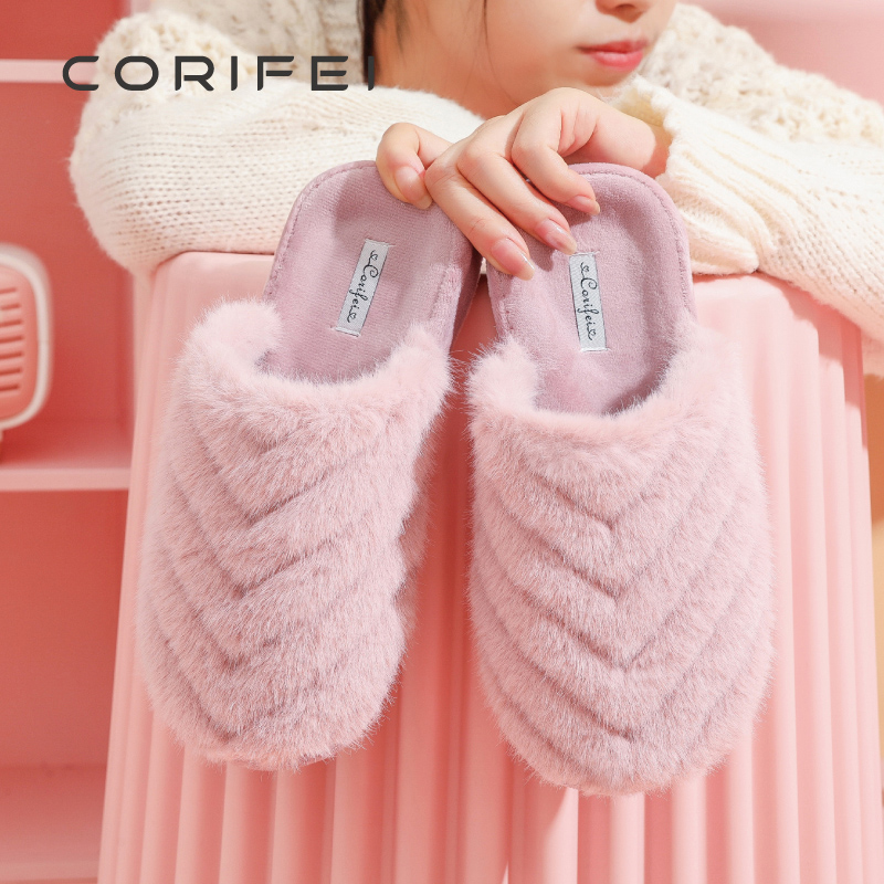 室内棉拖鞋 家丽芙冬季 女士加厚防滑毛毛绒轻奢风拖鞋 保暖拖鞋 新款