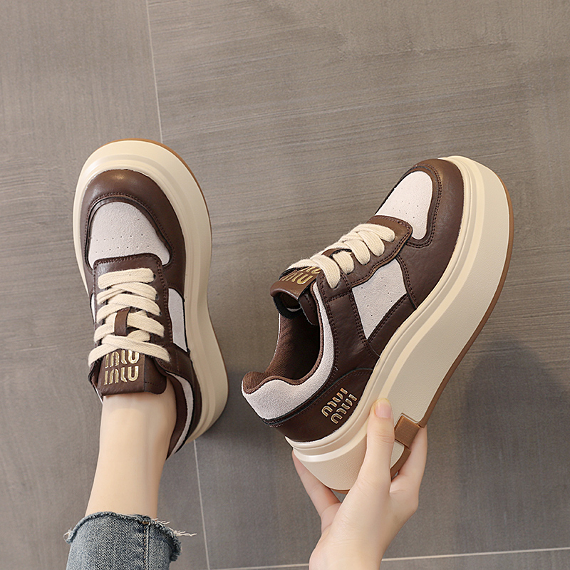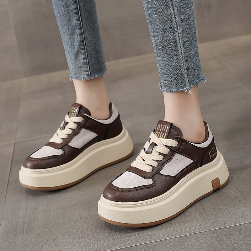 厚底增高运动休闲鞋 加绒棉鞋 女2024秋冬新款 欧洲站真皮复古小白鞋