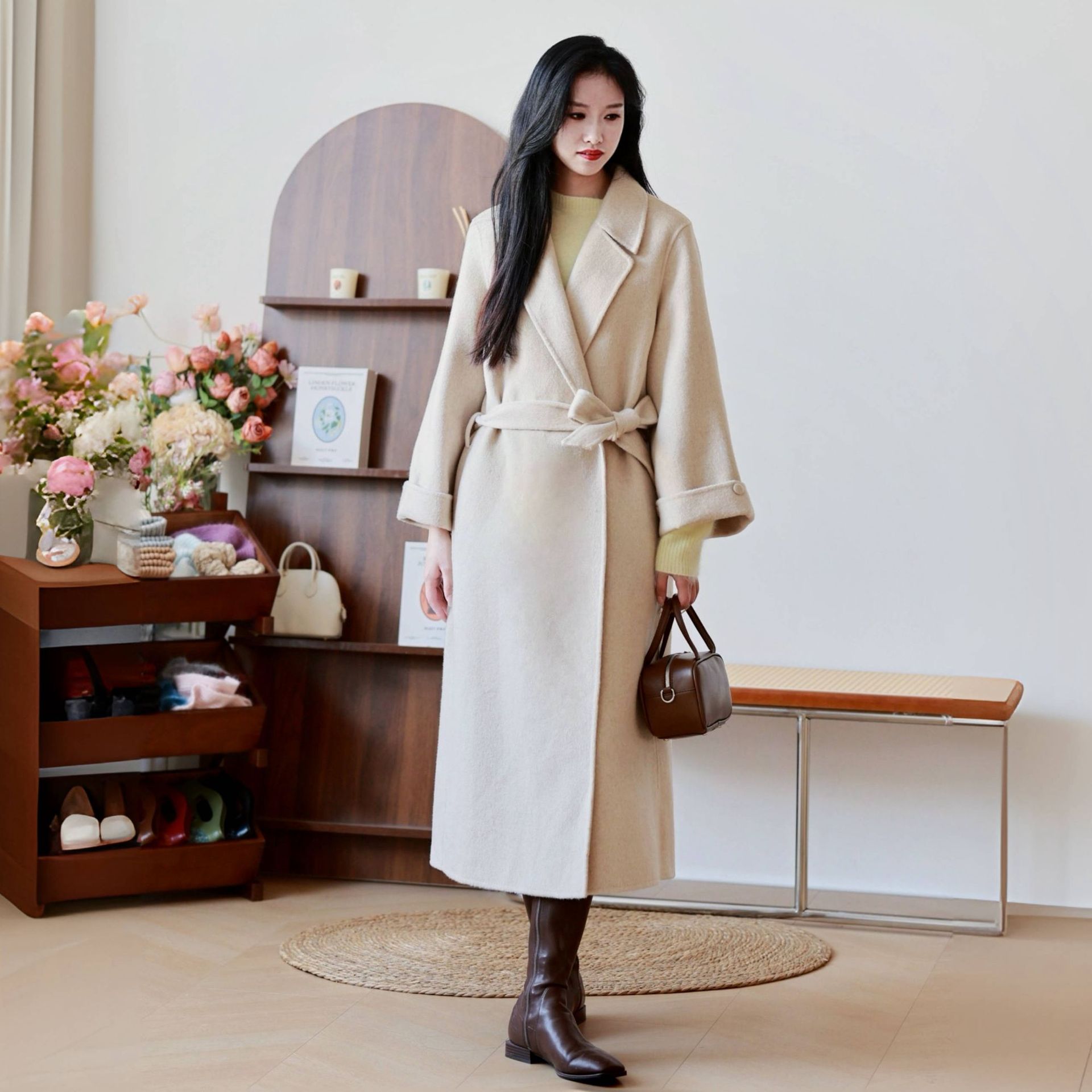 高个子双面呢加长款 高级感毛呢外套 羊绒大衣女2024秋冬过膝加长款