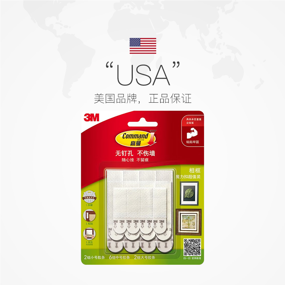 3m无痕胶魔术贴高曼魔力扣挂钩粘胶相框免打孔照片墙挂画 自营