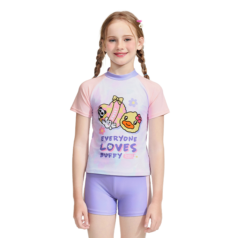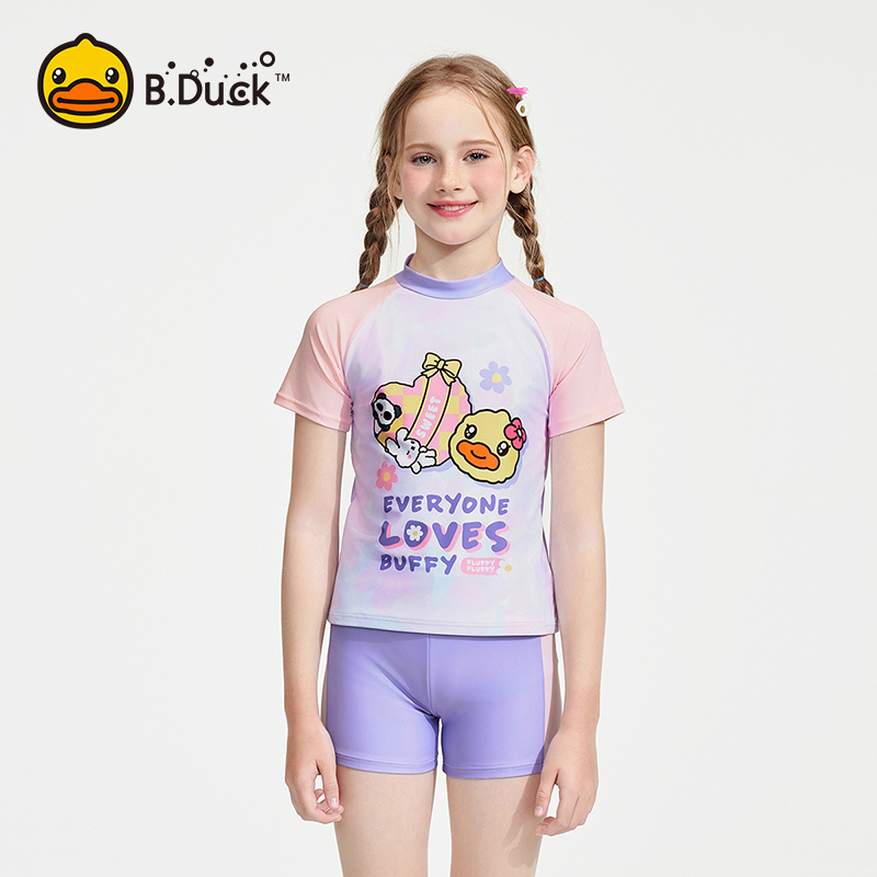 B.Duck儿童泳衣女孩专业训练中大童分体速干游泳馆专用运动套装