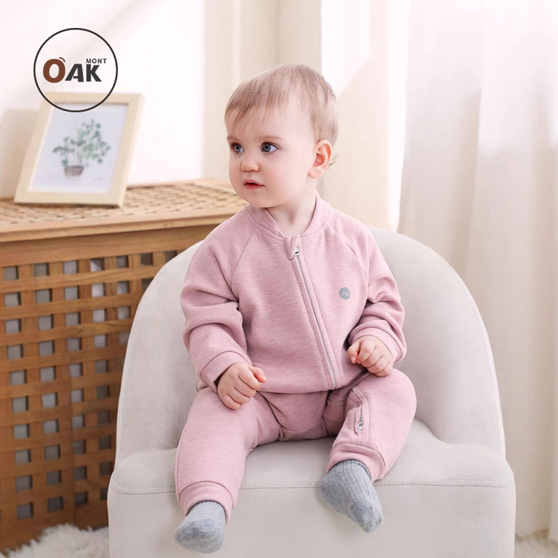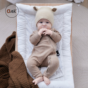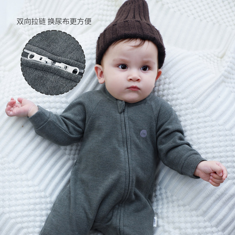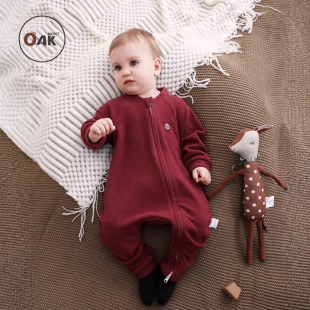 Oak 蚕丝羊毛新生儿宝宝婴儿连体衣拉链衣服满月打底爬服 mont秋装