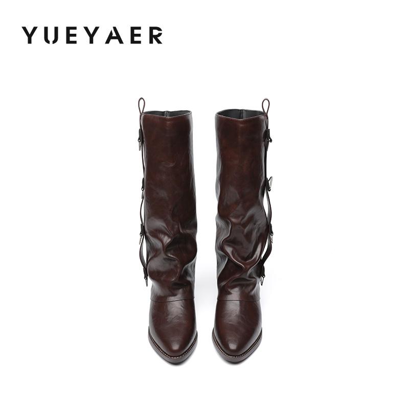 月芽儿长筒靴女裤 不过膝骑士靴复古厚底堆堆靴 管靴子加绒保暖爆款