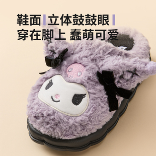 女毛毛库洛米卡通新款 MINISO 名创优品三丽鸥毛绒保暖软底棉拖鞋