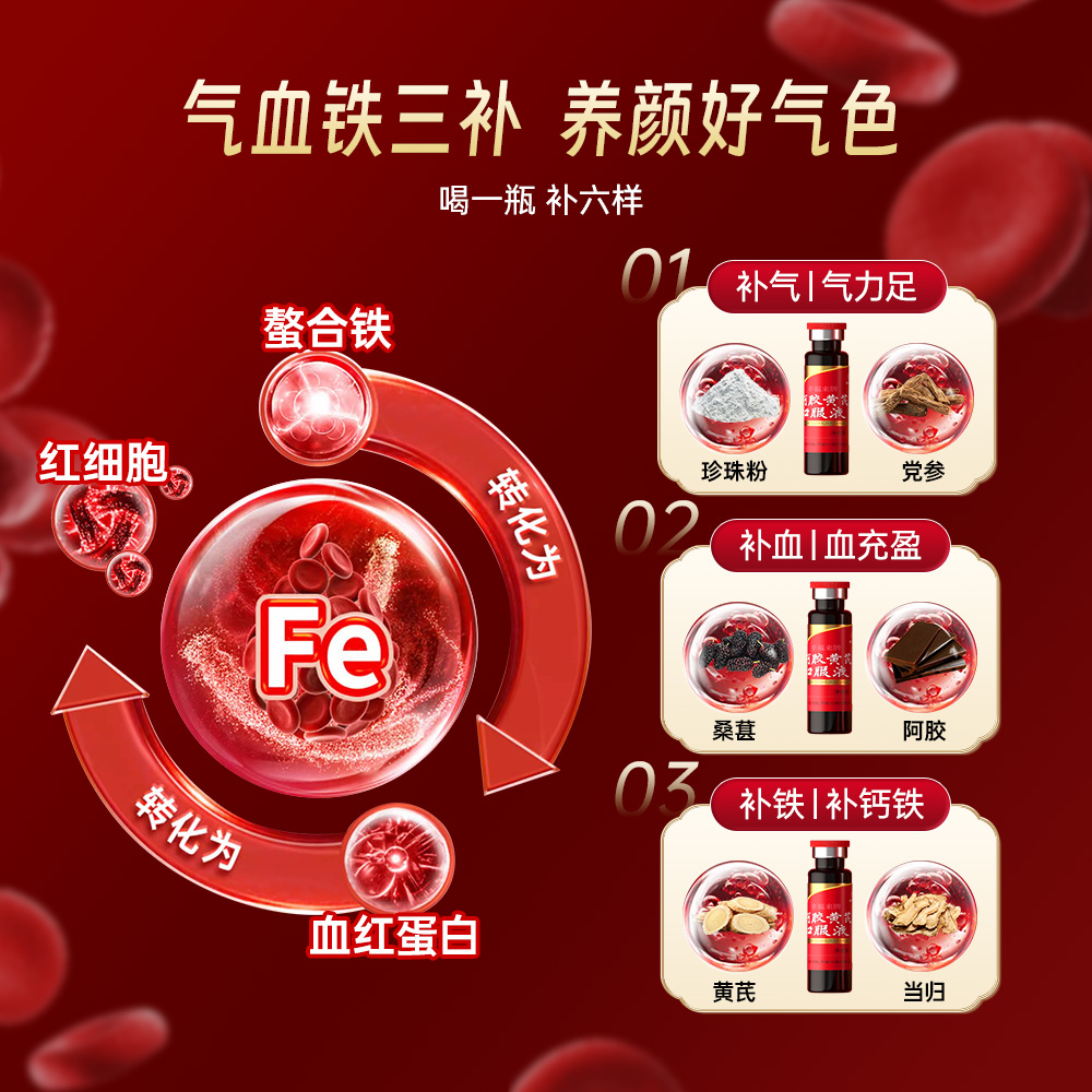九芝堂阿胶黄芪补血口服液浆女性调理补气血补铁女生贫血补气养血