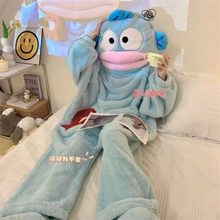 半边绒可爱加厚冬男士 有棵树睡衣女款 情侣家居服套装 成毅同款