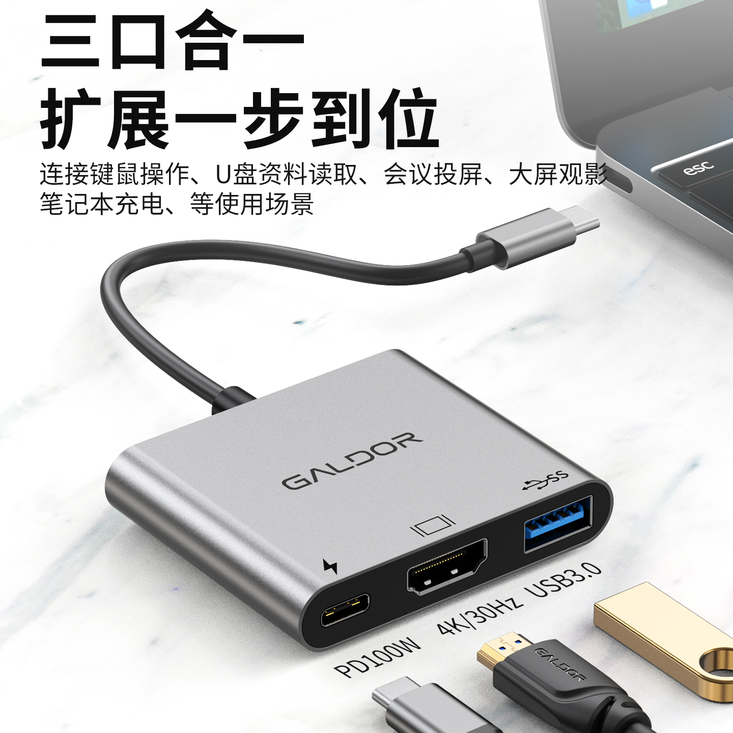 PD供电usb3.0适用于华为苹果电脑笔记本手机投屏直播PD充电边充边用 c转HDTV 高多 3合1扩展坞USB