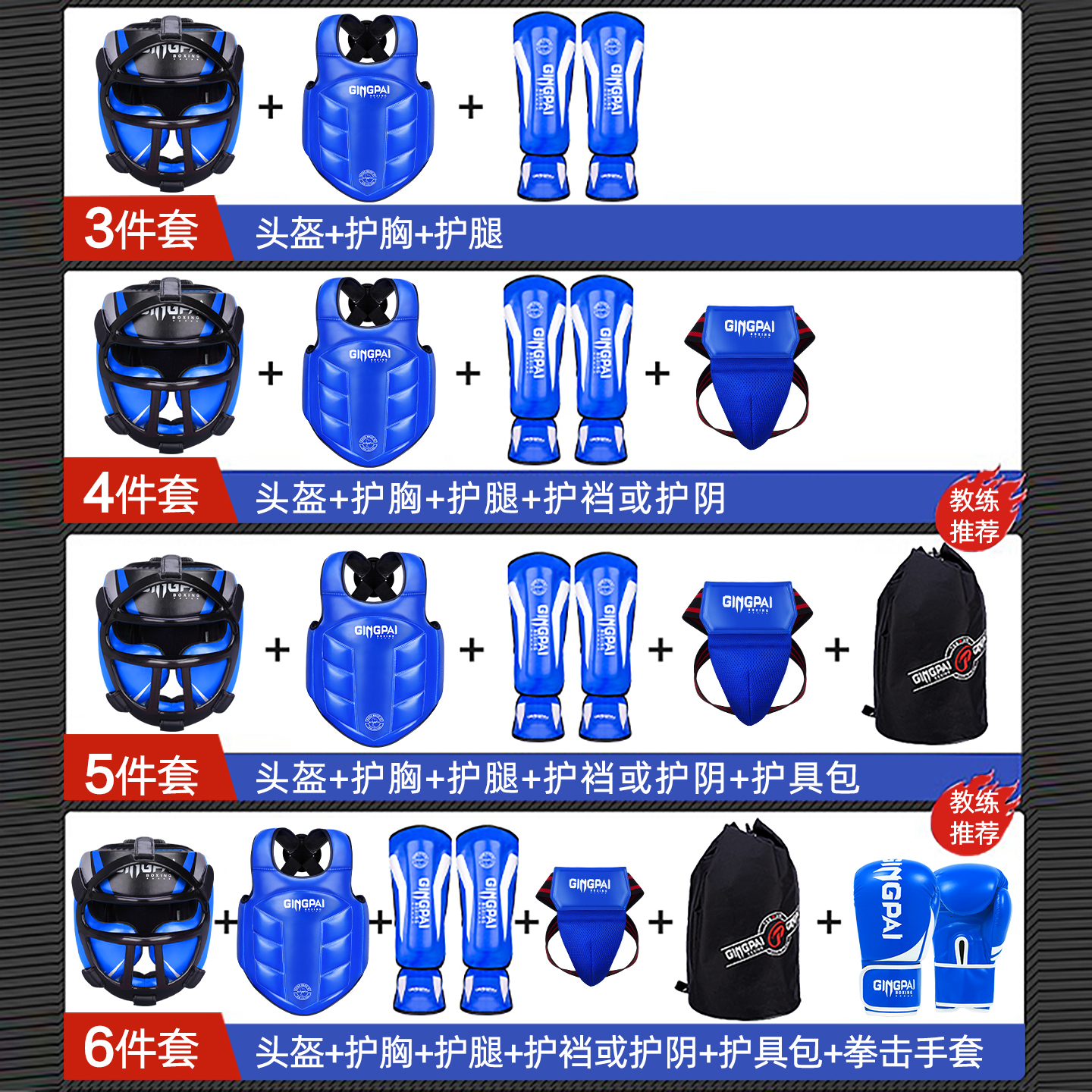 搏击护具全套儿童男泰拳散打拳击训练护头盔腿胸裆女成人专业加厚