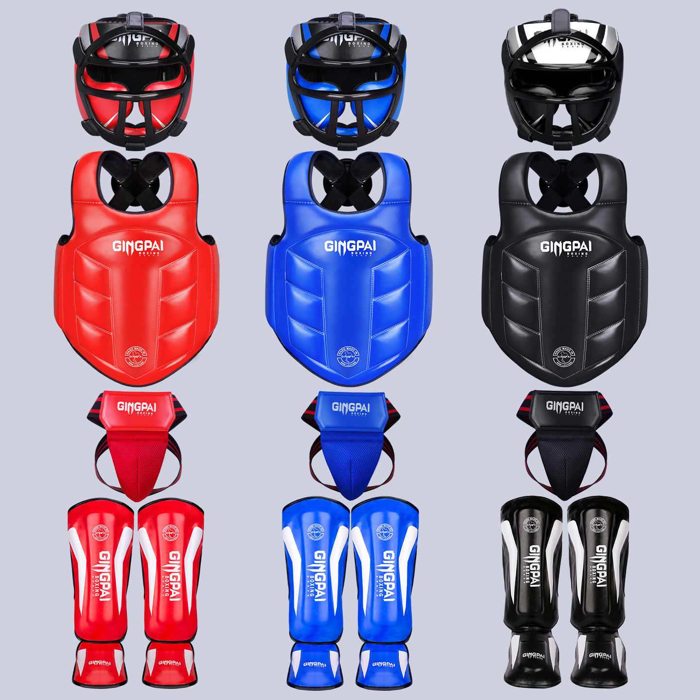 竞派散打护具全套成人儿童泰拳拳击训练护头护腿护胸搏击护具套装