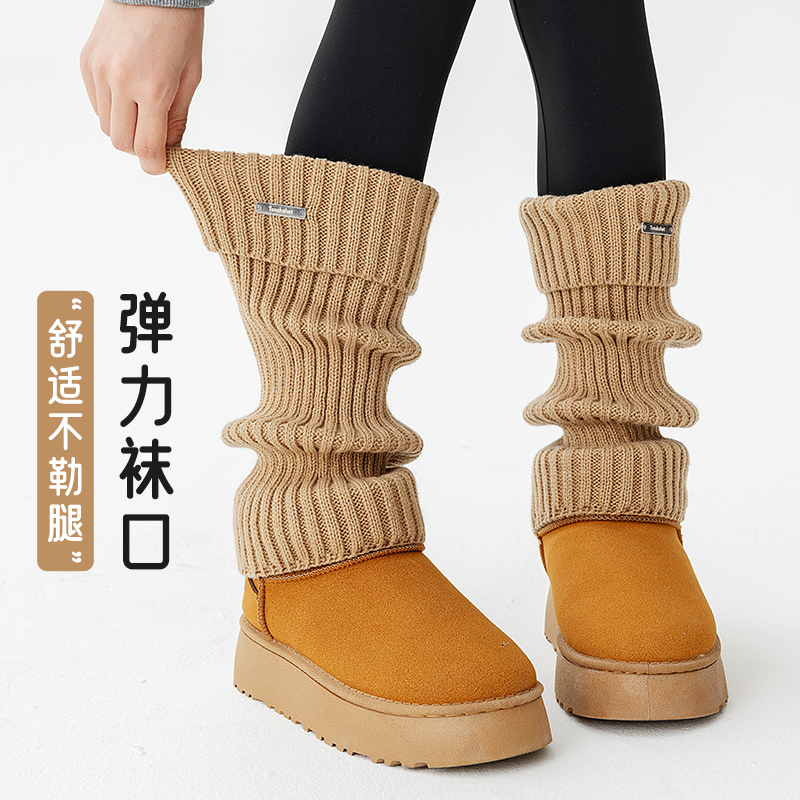 袜子女中筒袜纯棉春秋咖色美拉德堆堆袜秋冬搭配小皮鞋 长袜 勃肯鞋