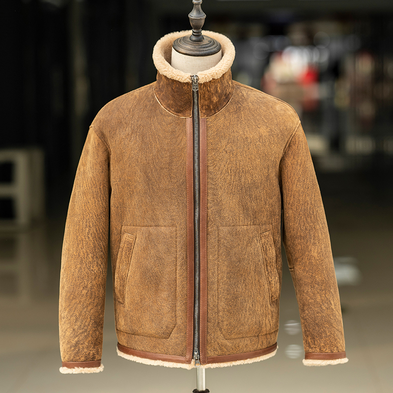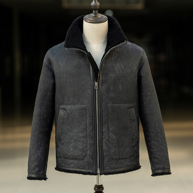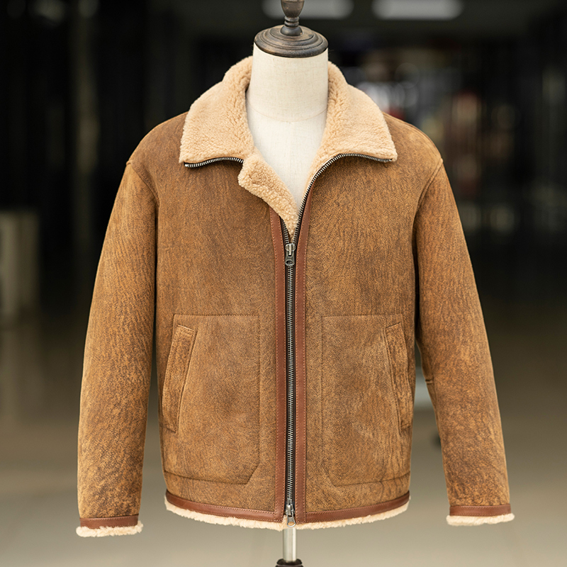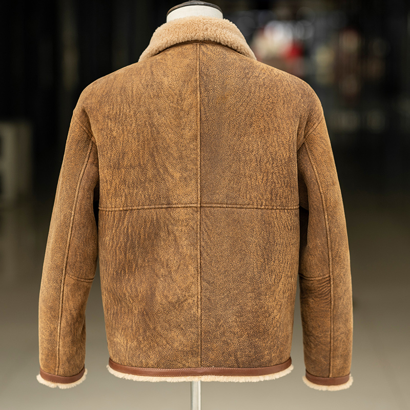时尚 复古原生态皮毛一体男轻便保暖真皮真毛羊皮夹克外套冬季