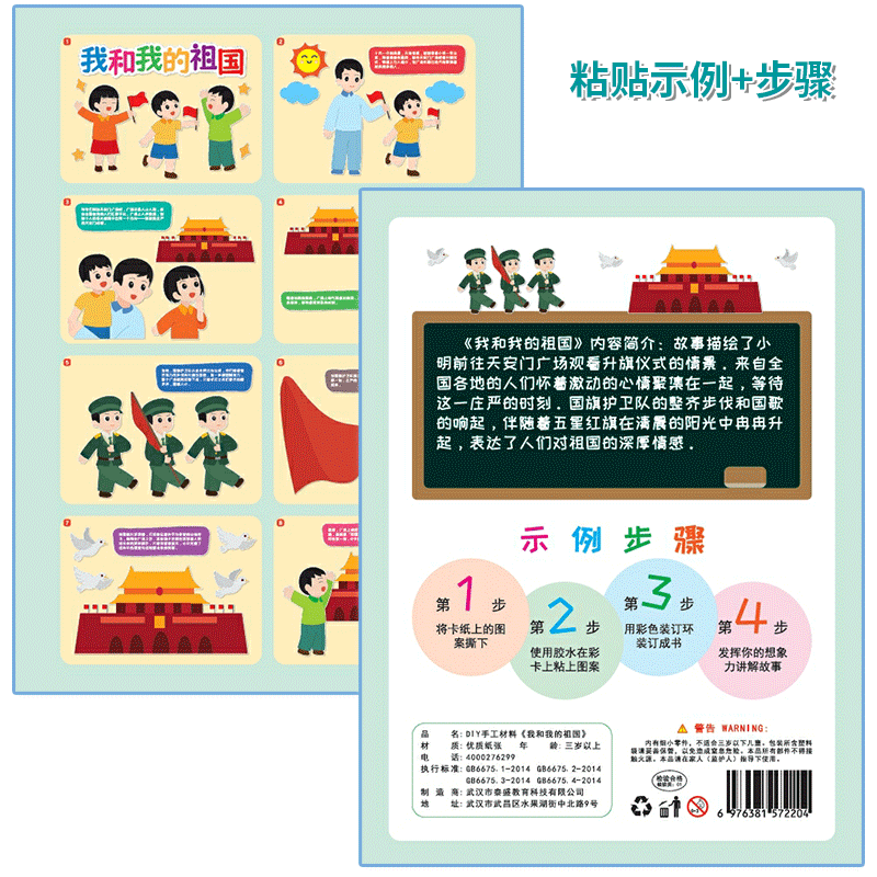 我和我 祖国幼儿自制绘本diy手工制作材料包彩色卡纸红色教育故事书小学生幼儿园学前儿童少儿早教益智创意模板半成品亲子粘贴画