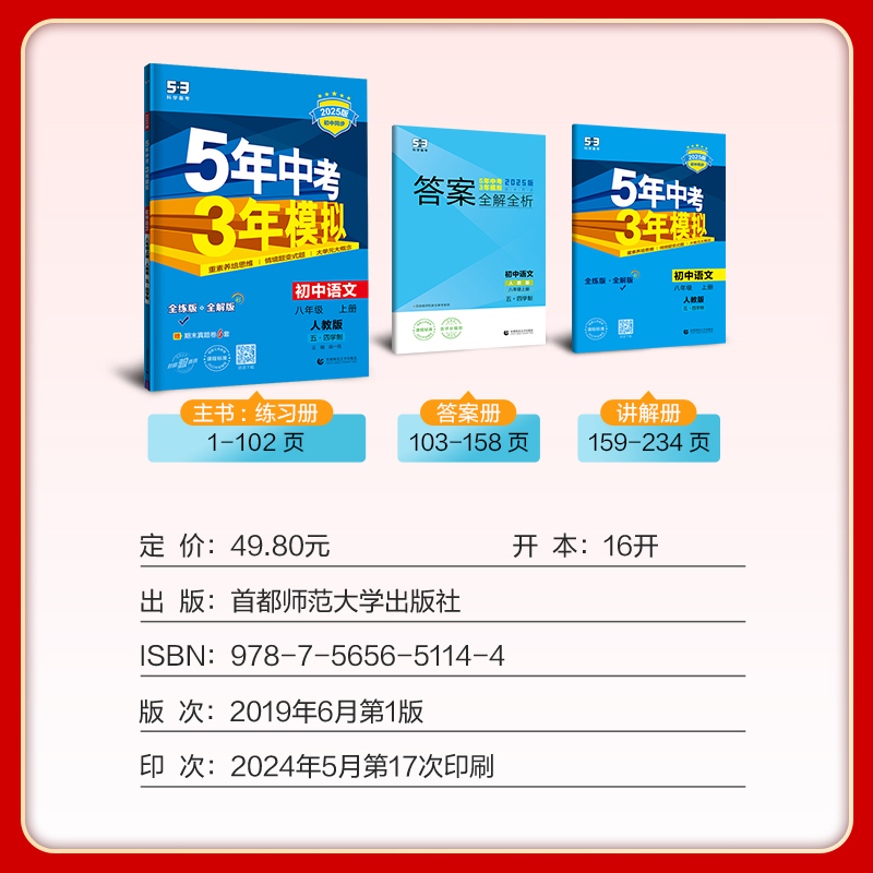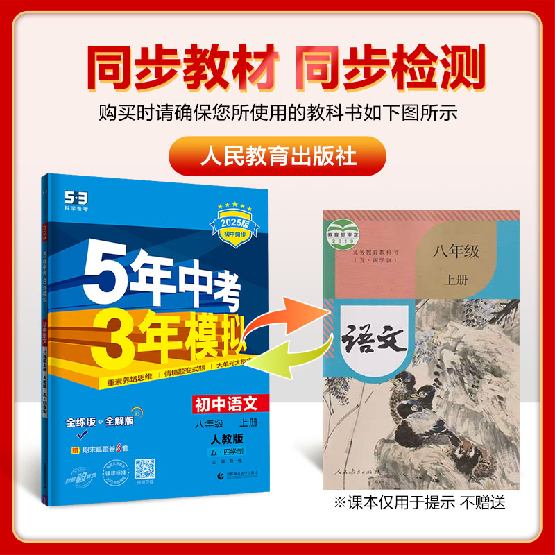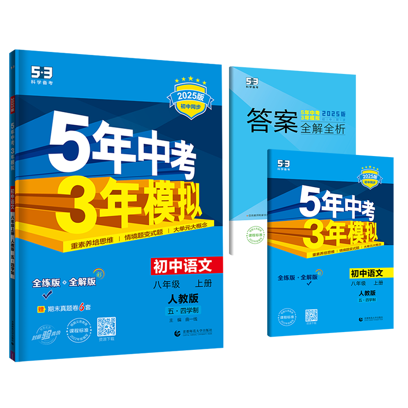 曲一线5年中考3年模拟8年级语文上册人教版 鲁教五四制 54制练习册 五年中考三年模拟八年级上册语文人教版 五四制2025版