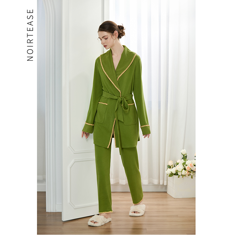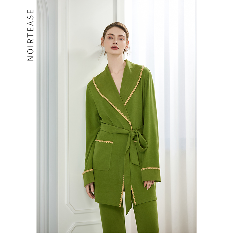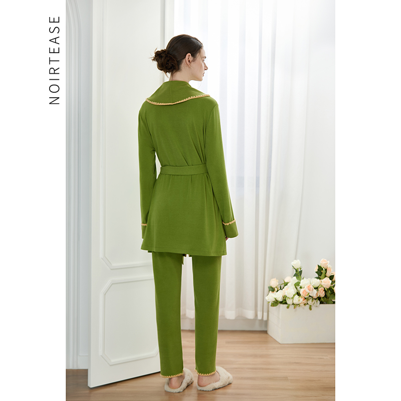 NoirTease春秋德绒加厚睡衣女冬薄绒磨毛保暖发热睡袍家居服套装