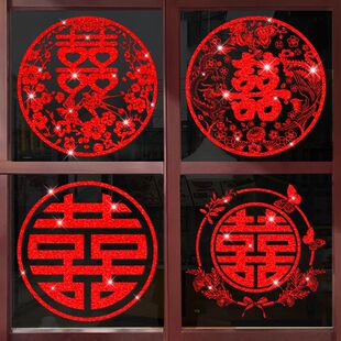 结婚喜字贴窗花玻璃门贴纸静电双喜贴婚房布置喜庆装 饰品婚礼专用