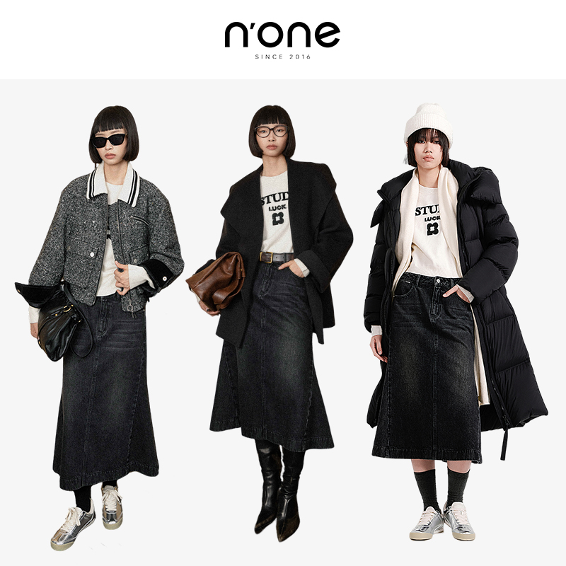 优雅菱格简约H型长裙 时尚 秋水伊人毛呢设计半身裙2025年冬季 新款