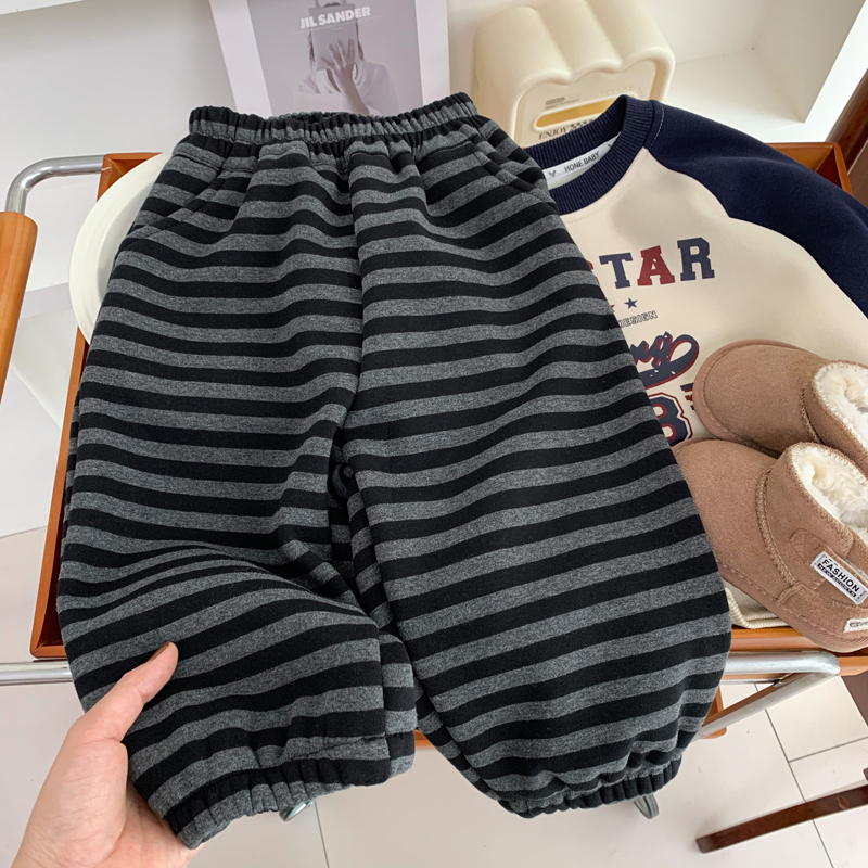 加绒街舞穿搭褶皱宽松休闲长裤 女秋冬季 子 灰色运动卫裤 自然涩美式
