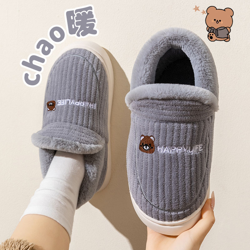 室内家居包跟保暖家用毛毛加绒棉鞋 2025新款 女 女士冬季 红豆棉拖鞋