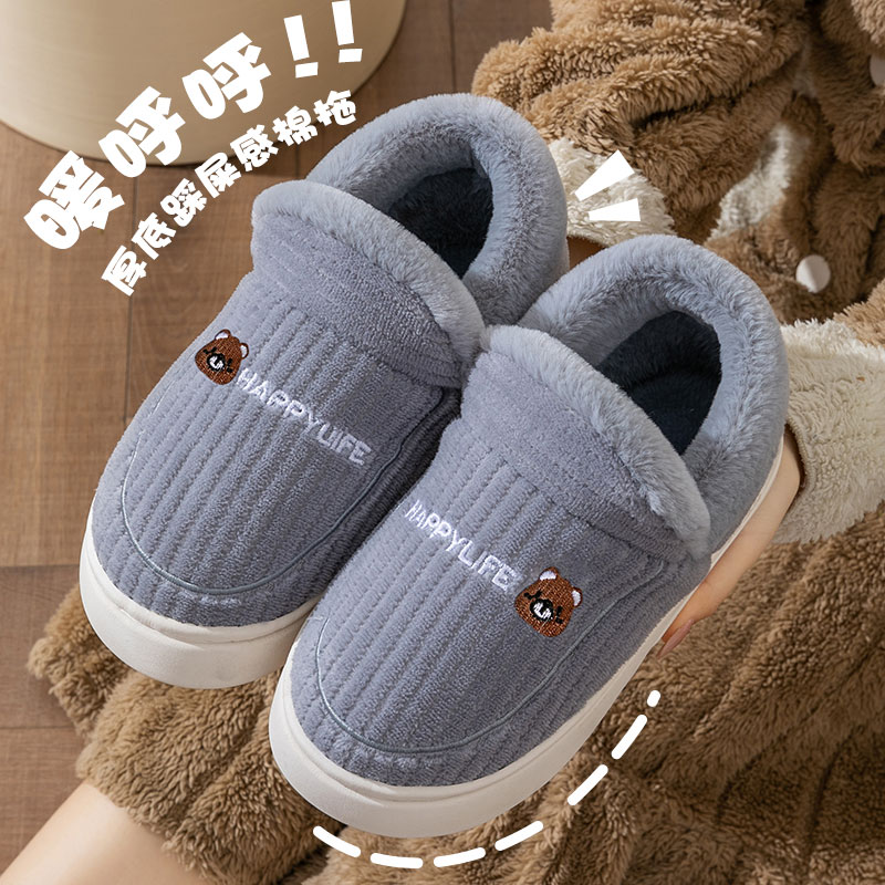 室内居家加绒保暖厚底防滑棉鞋 包跟棉拖鞋 2025新款 冬季 女外穿 女款