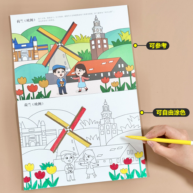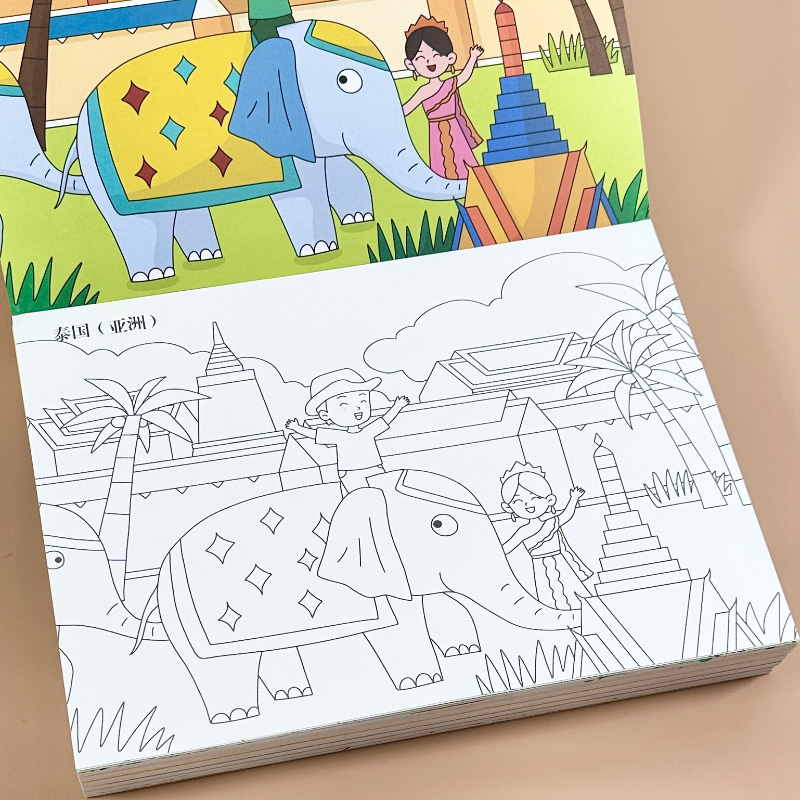 游世界涂色书儿童画画本3到6岁以上地理认知玩具水彩笔绘画图画本
