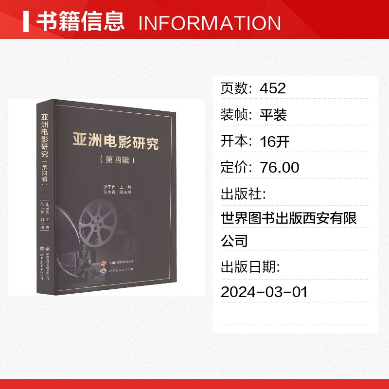 电视艺术艺术 西安有限公司 张宗伟 世界图书出版 图书籍 新华书店正版 电影 编 范小青 第4辑 亚洲电影研究